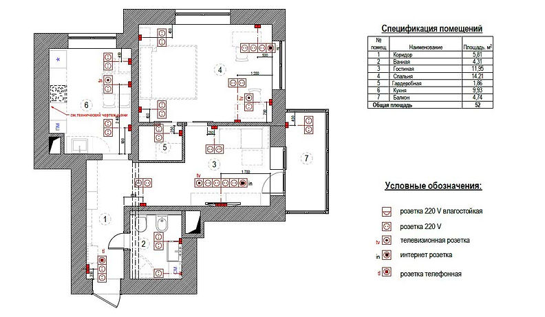 План расстановки мебели и оборудования с указанием габаритов и геометрических привязок.